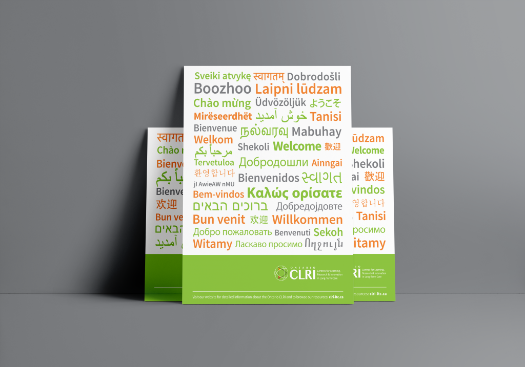 These posters list the word “welcome” or a similar meaning word in over 40 languages commonly spoken by older adults in Ontario and in long-term care (LTC) homes that serve people belonging to specific ethnic cultures.